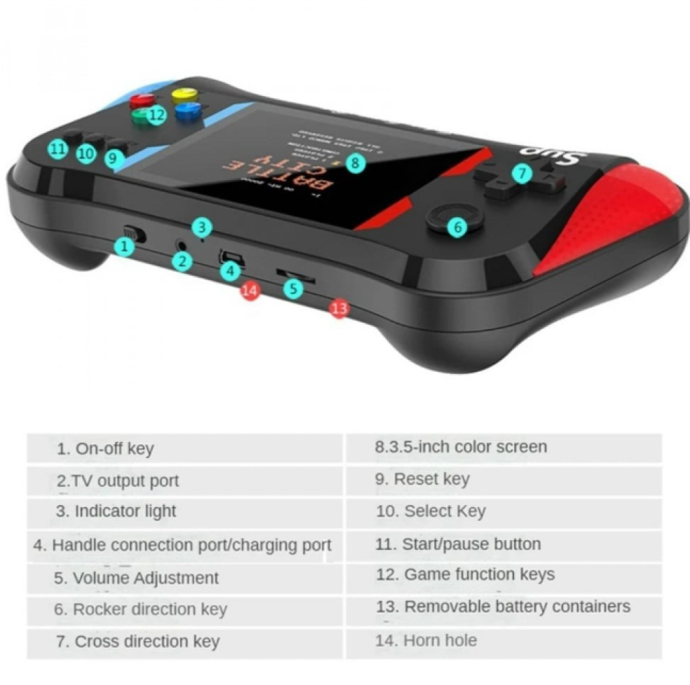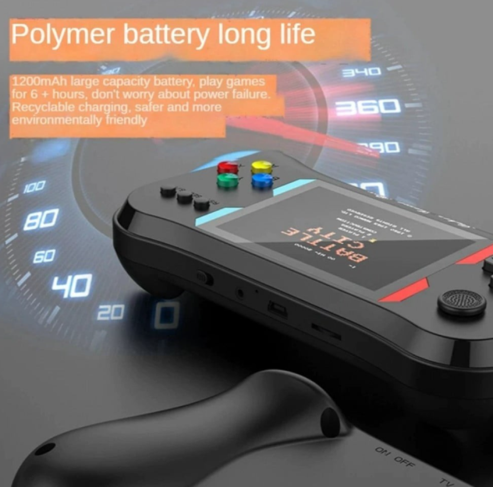 جهاز العاب الكتروني محمول يحتوي على أكثر من 500 لعبة من العاب الماضي الجميلة ، يعمل بدون انترنت مع ذراعين تحكم وشاشة مدمجة تدعم اللعب الثنائي .
