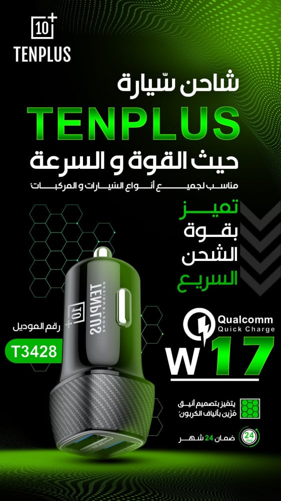 كل ما تحتاجه من أجهزة ذكية واكسسوارات جوال في مكان واحد ، نقدمها في متجرنا لك لتواكب وقتك بكل سهولة ، إليك أحد منتجاتنا التى حرصنا على توفيرها لتمنحك استخدام مثالي ، شاحن تن بلس للسيارة منفذين USB 17W ، إختيار مثالي يمنحك إستخدام فائق ، حيث تمت صناعته باحترافية وكفاءة ، يمكنك الحصول عليه الآن بسعر مميز و حصري .
