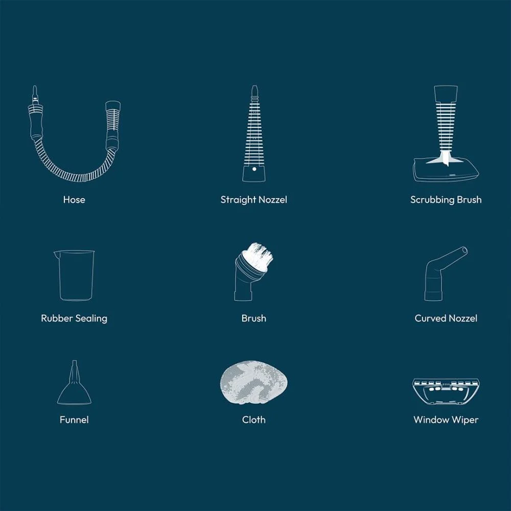 جهاز بخار يدوي قوي ومتين، مصمم لتنظيف وتعقيم كل الأسطح بفعالية باستخدام البخار الساخن فقط، بدون أي مواد كيميائية.