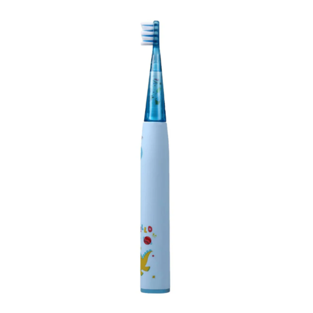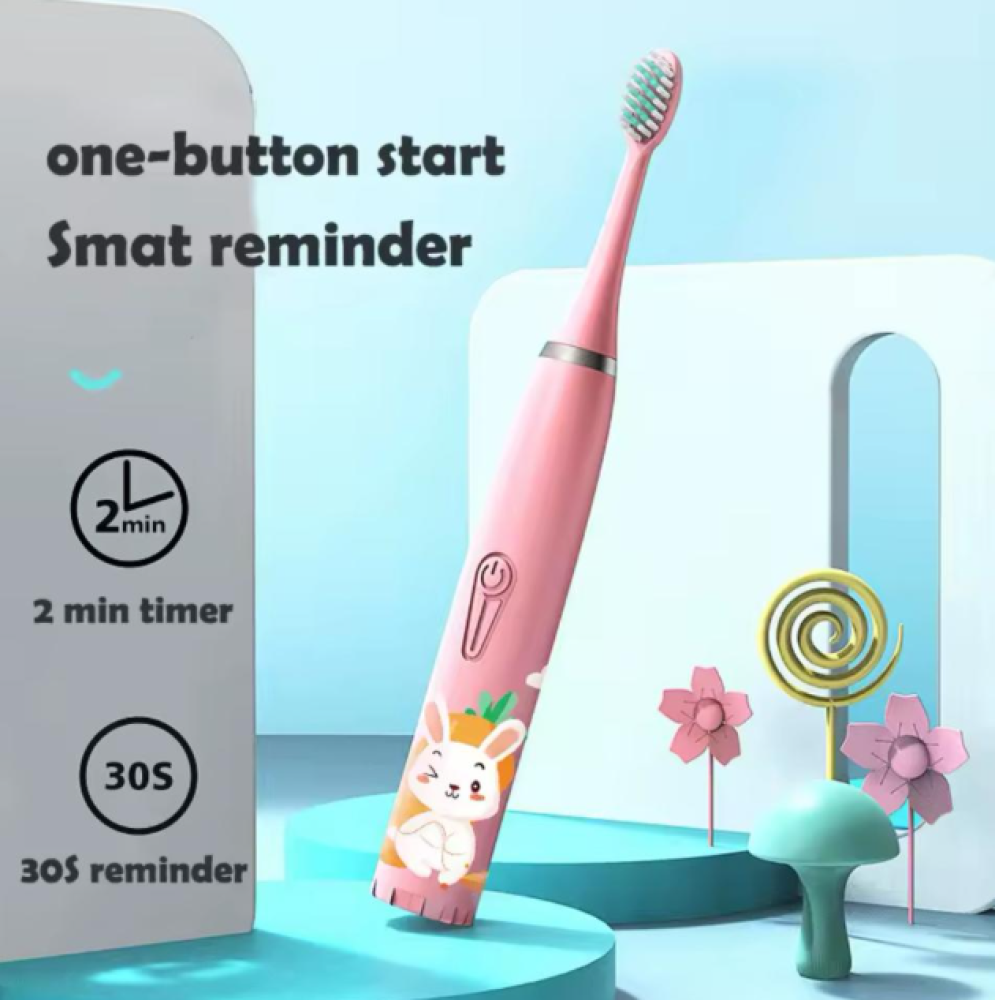 It features a cute design that appeals to children, with cartoon character graphics on the brush body.
